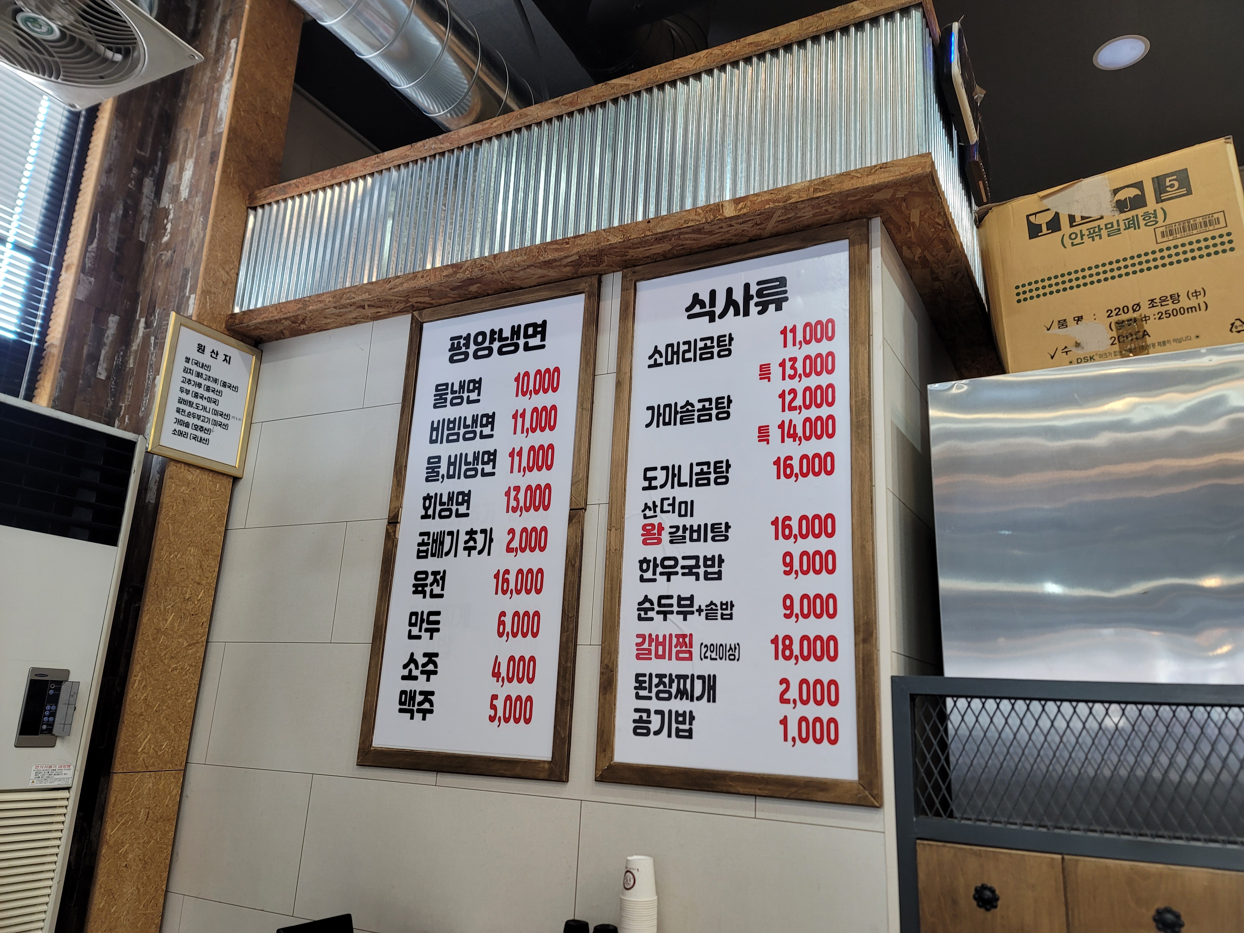 메뉴판 기본적으로 고깃집인데