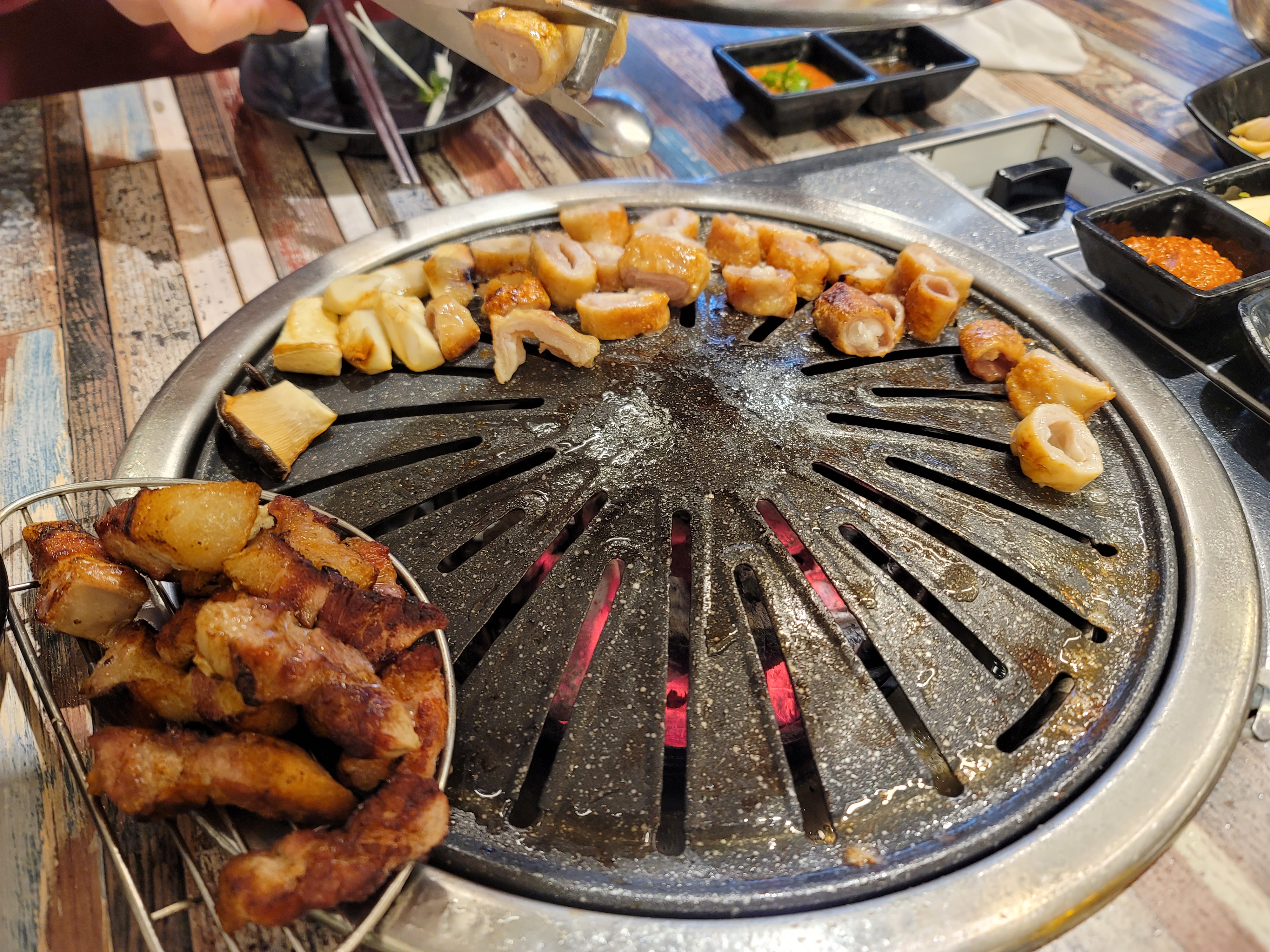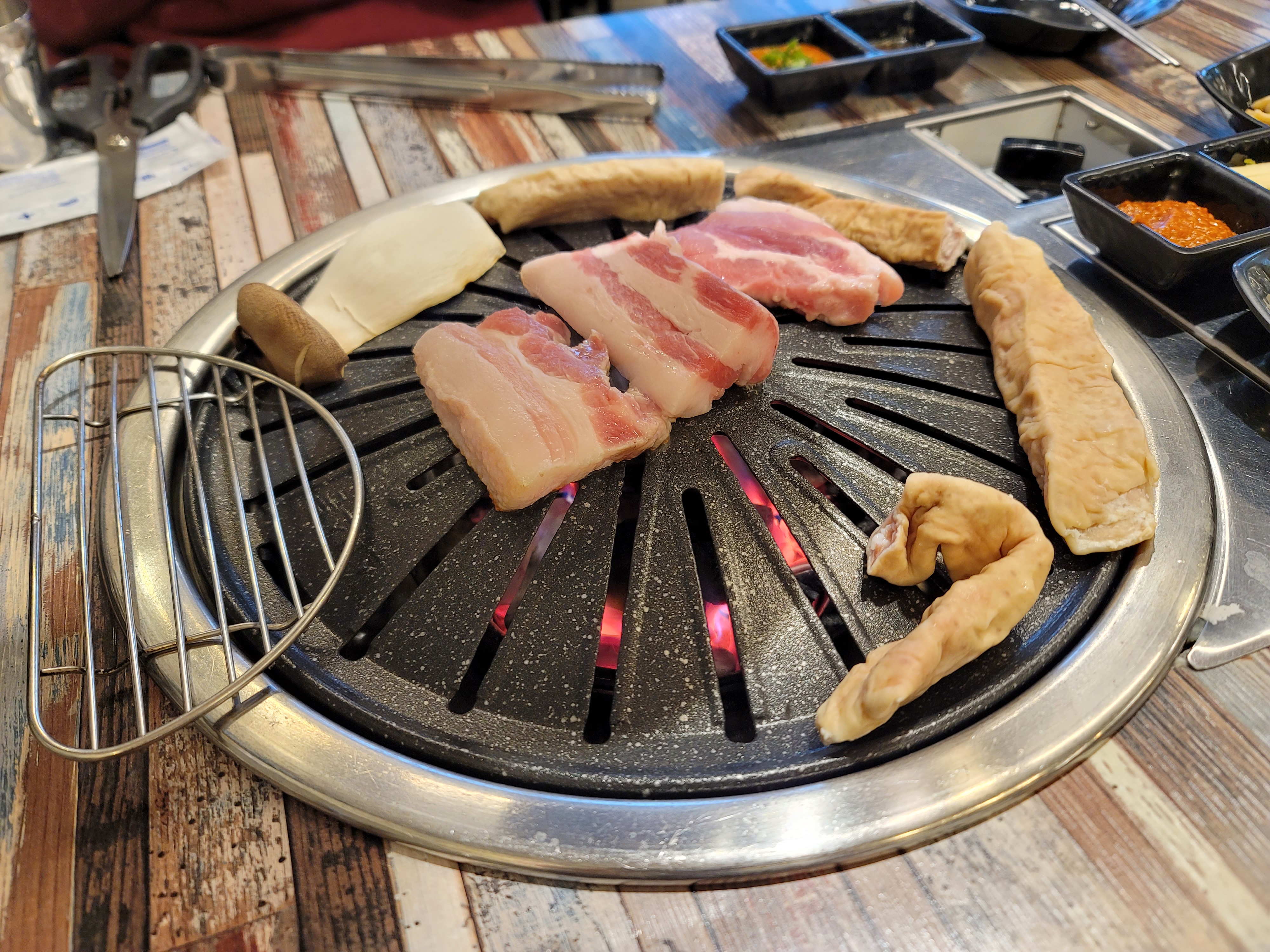 삼겹살은 빨리 익고 막창을