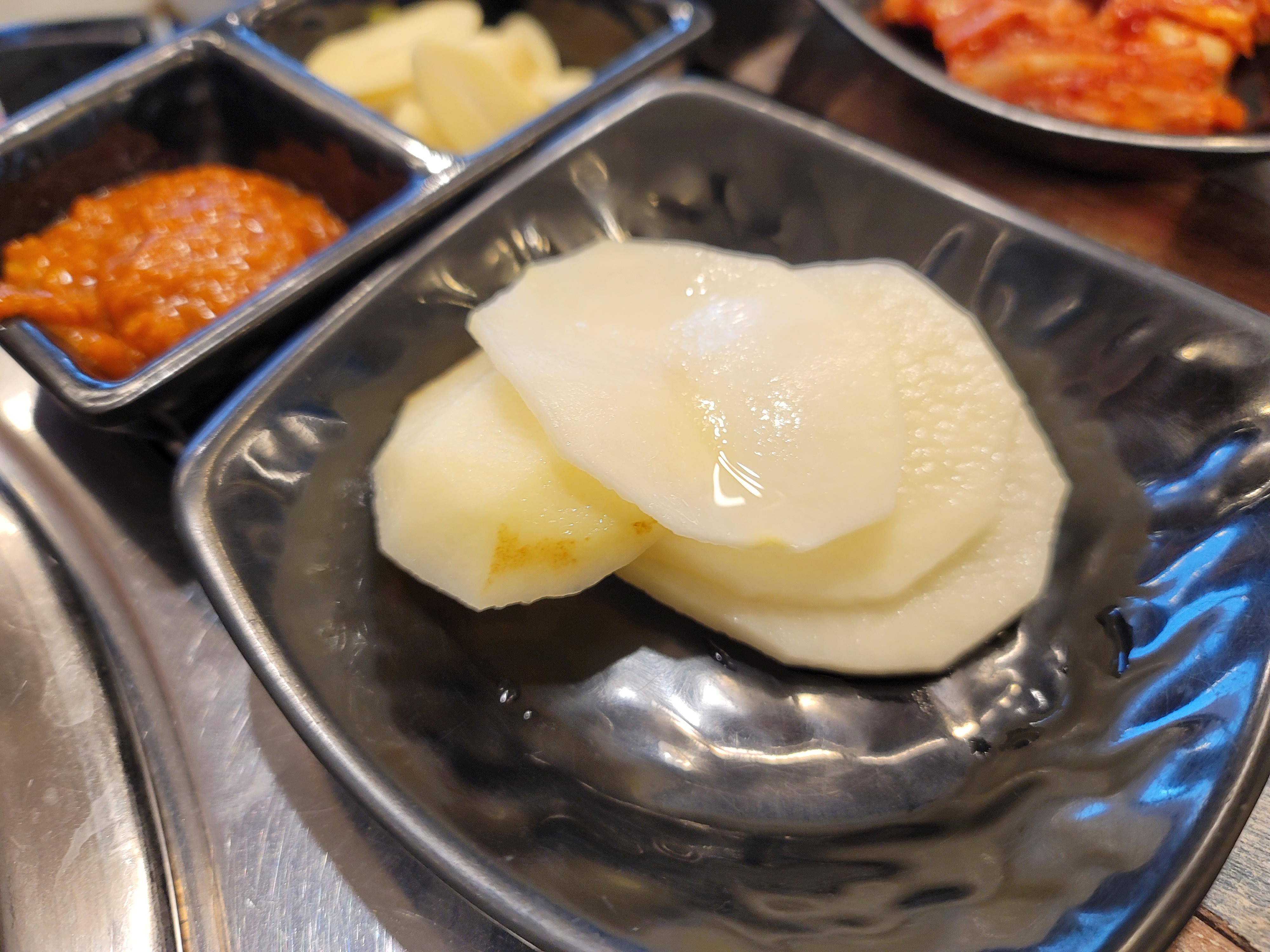 생감자인데 고기를 굽고 나서