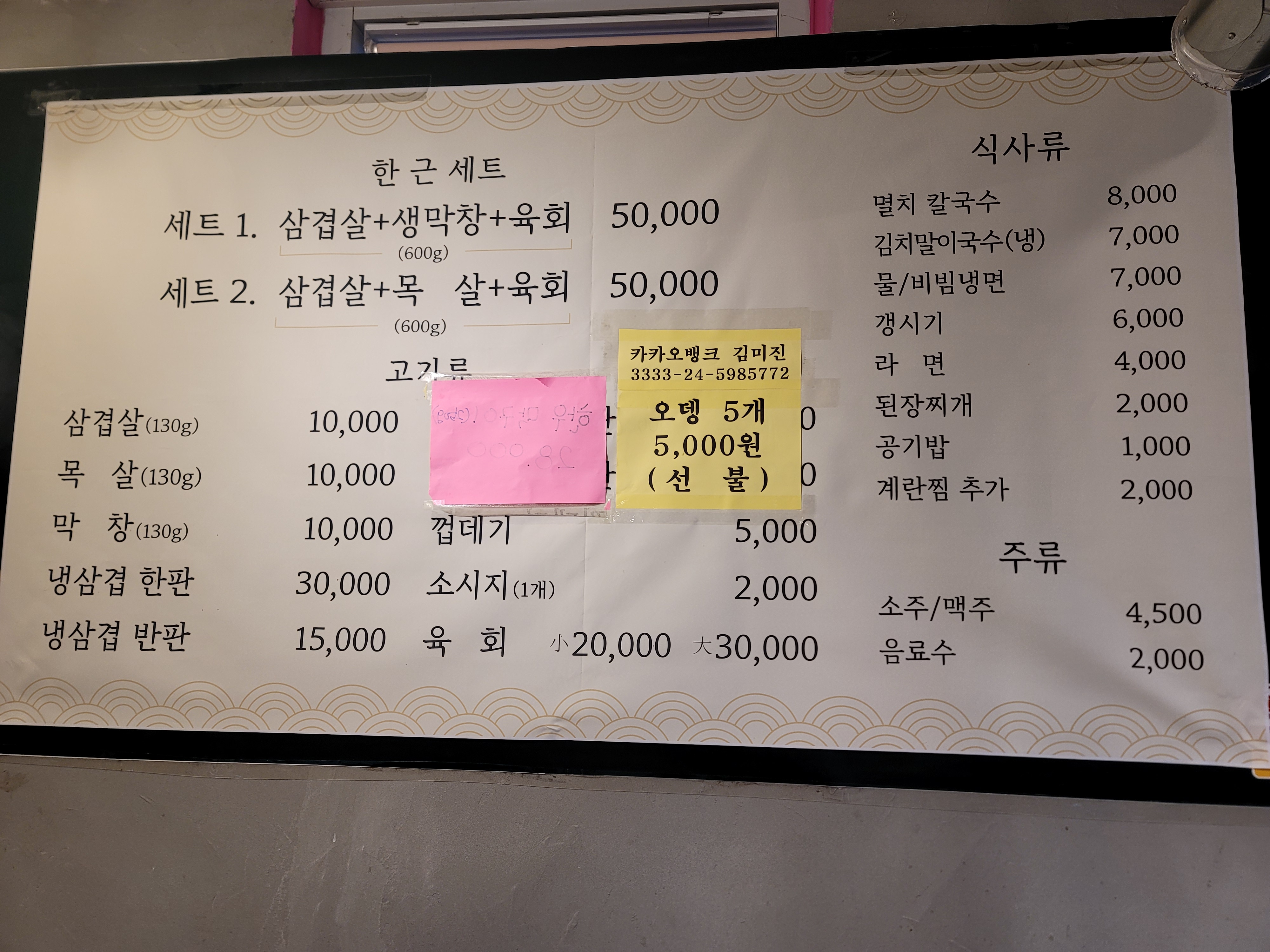 간판은 삼겹. 막창. 육회라고 적혀있지만